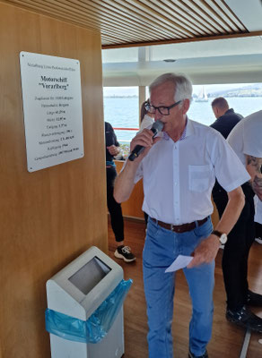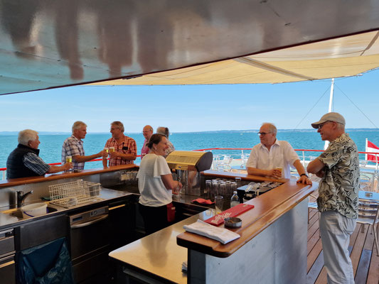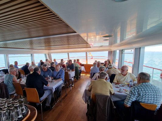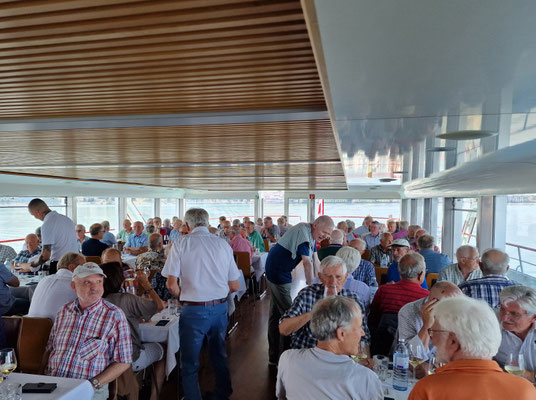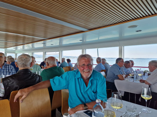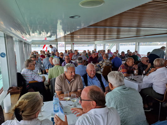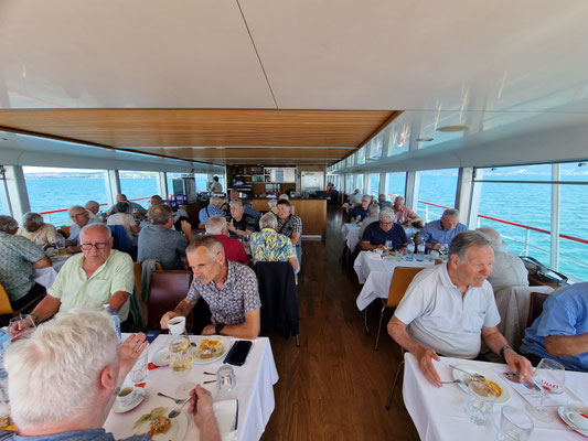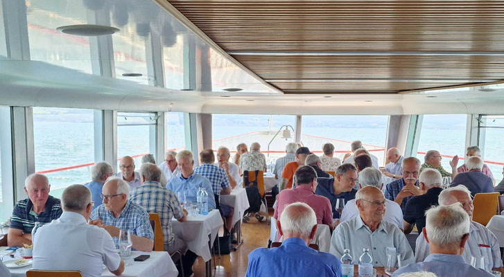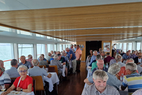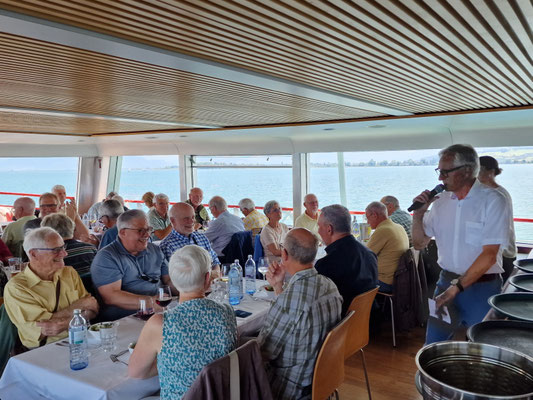 Nachdem alle an Bord waren und einen Platz gefunden hatten, legte das Schiff zu der 3-stündigen Fahrt ab. Urs Weidmann hielt eine kurze Begrüssungsansprache und wünschte allen eine gute Zeit bei